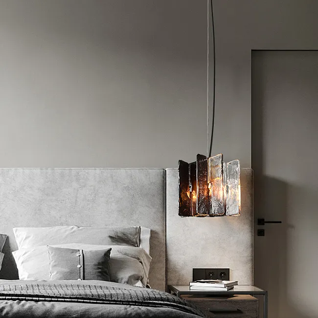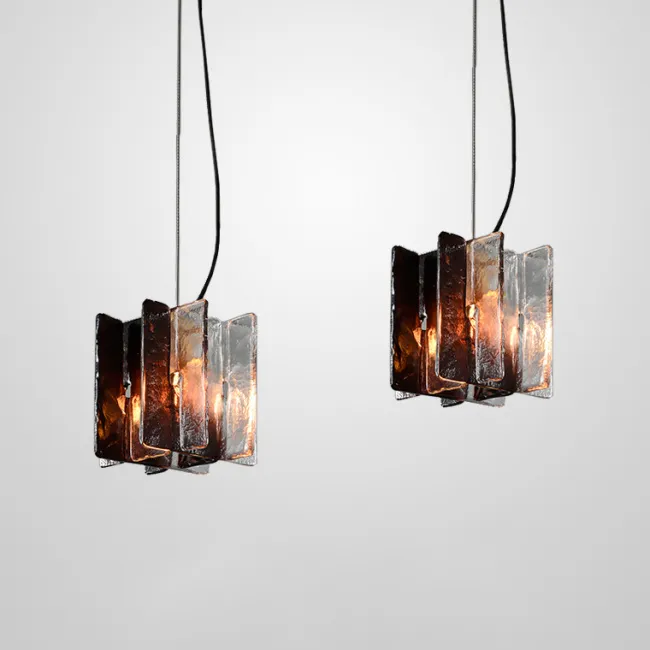 Настольный светильник с геометричным абажуром из фактурного текстурированного стекла
