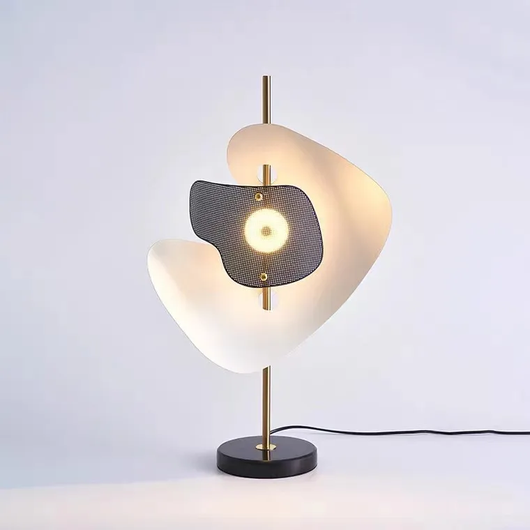 Настольная лампа с плоским ассиметричным рассеивателем из металла и сетки