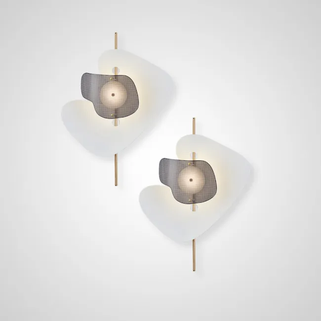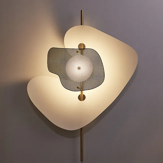 Настольная лампа с плоским ассиметричным рассеивателем из металла и сетки