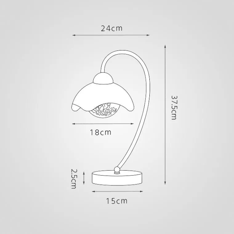 Настольная лампа с прозрачным фактурным рассеивателем внутри куполообразного плафона на изогнутой стойке