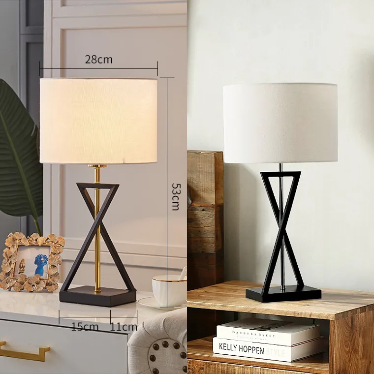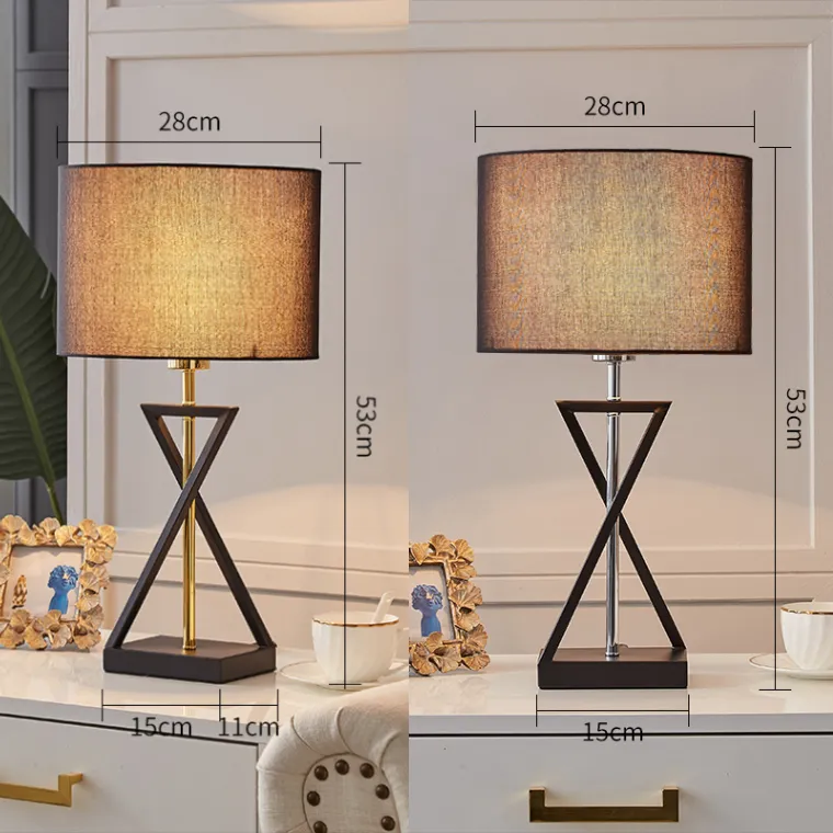 Настольная лампа с перекрещенной стойкой и круглым абажуром