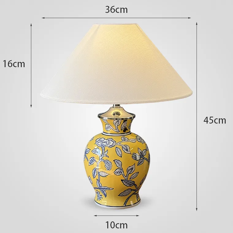 Настольная лампа с керамическим основанием в виде вазы с цветочным узором и текстильным абажуром в форме конуса в стиле династии Сун