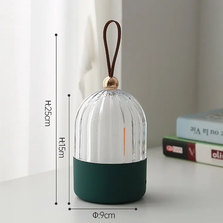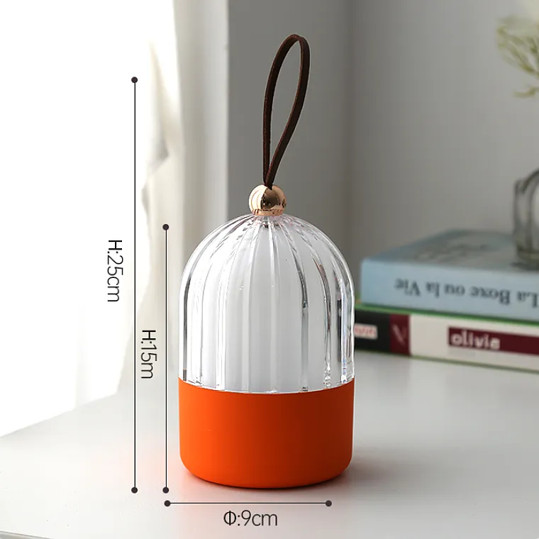 Компактный светильник цилиндрической формы с прозрачным плафоном и сенсорным включением.