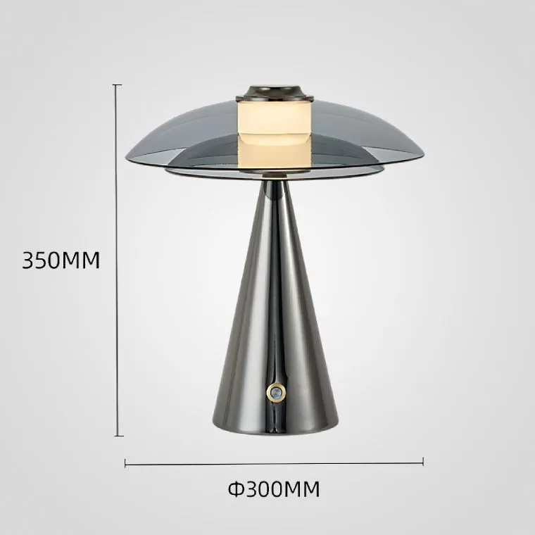 Светодиодная настольная лампа с двойным купольным плафоном из дымчатого стекла на коническом основании