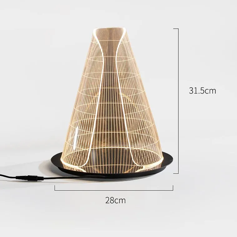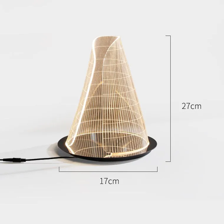 Настольная лампа с сенсорным управлением в минималистичном стиле, в форме усеченного конуса и с гравировкой на корпусе, создающей 3D-эффект
