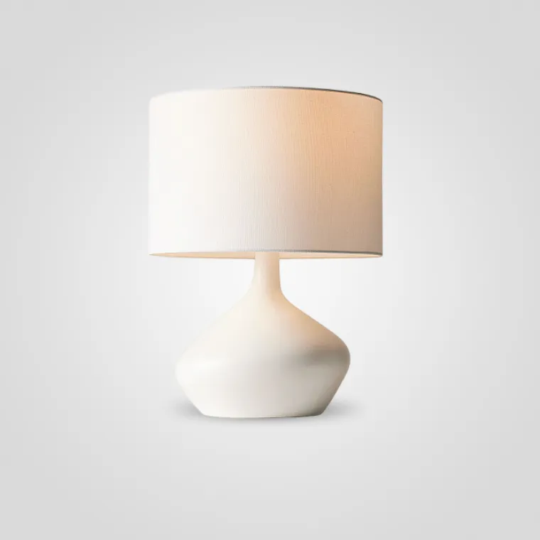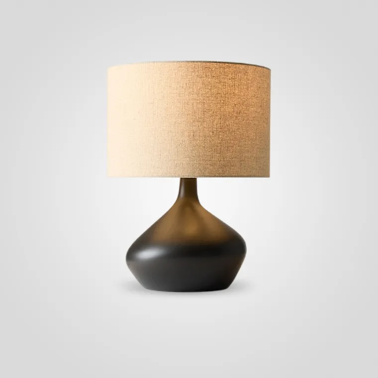 Настольная лампа с текстильным абажуром и черным основанием в форме капли