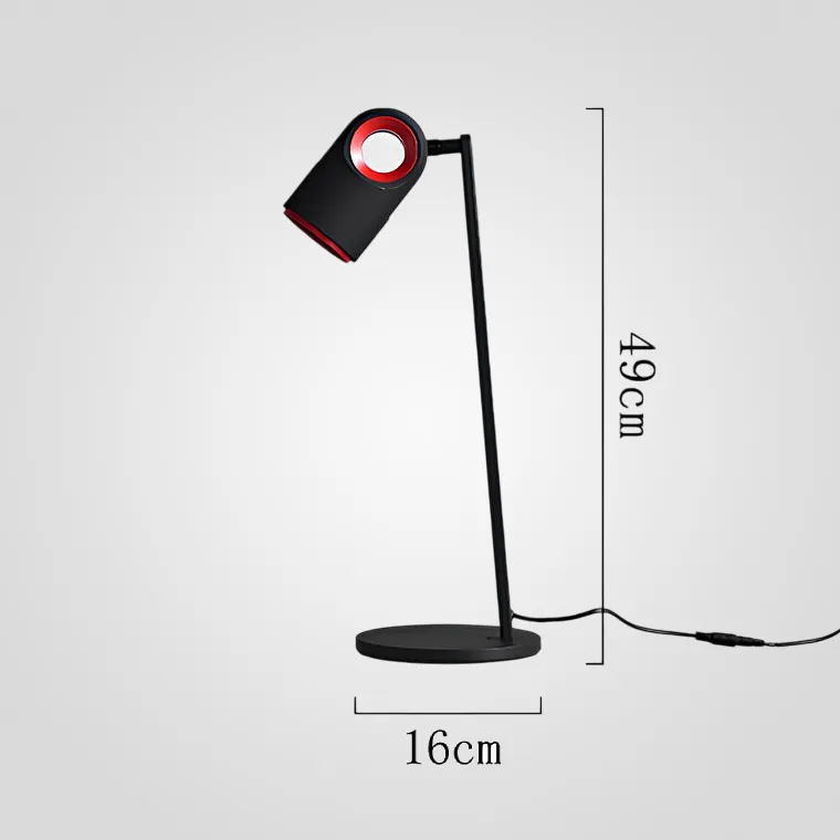 Светодиодная настольная лампа с направленным источником света на регулируемом плафоне с декоративыми элементами красного цвета