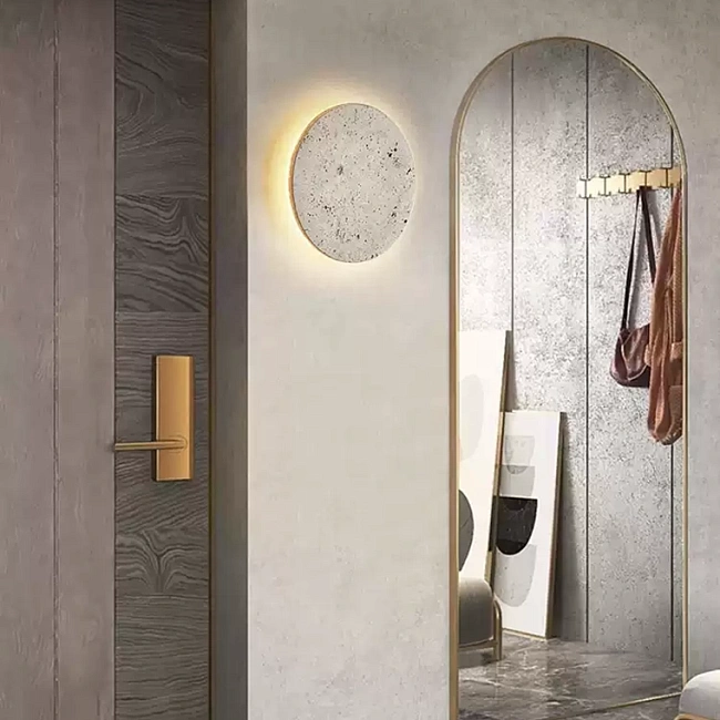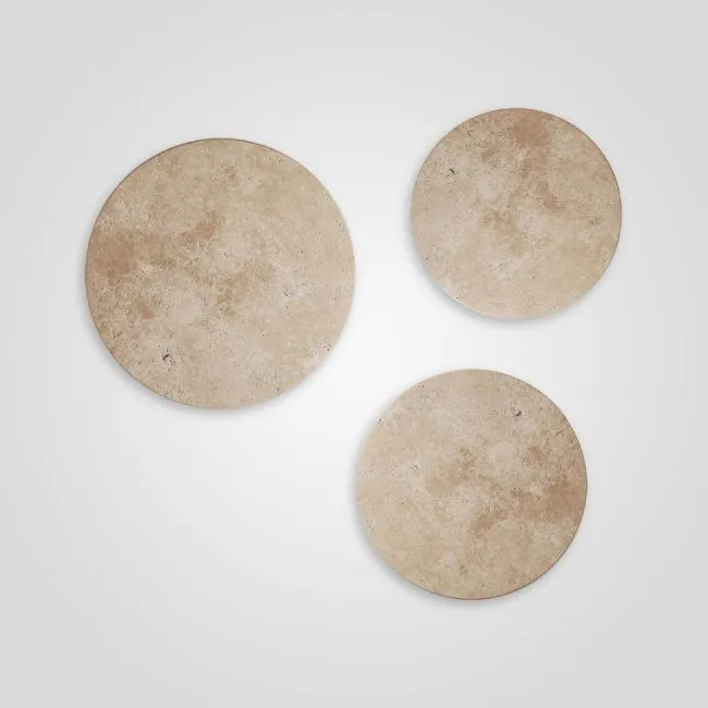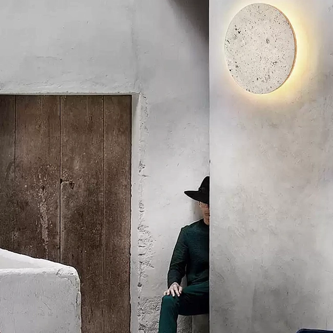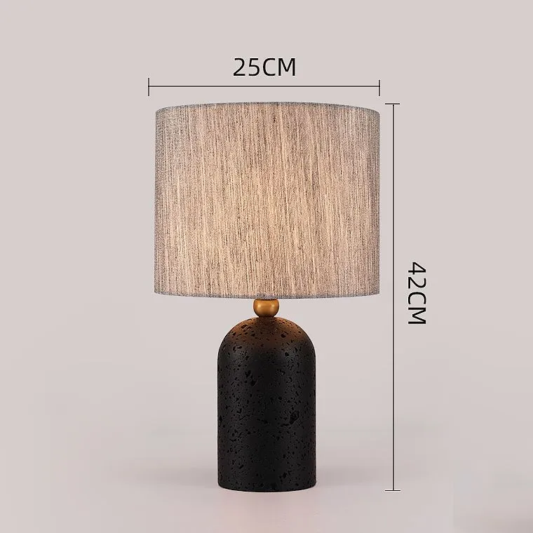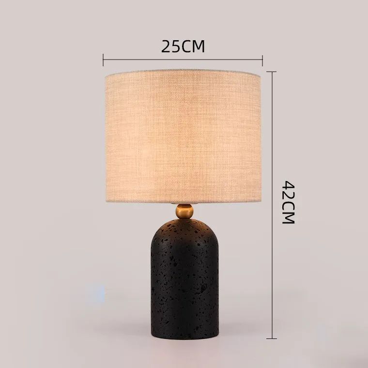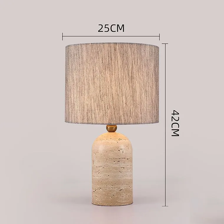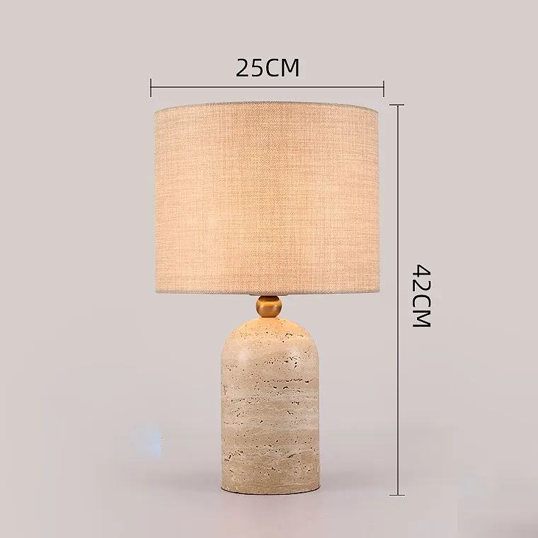 Серия настольных ламп с основанием из натурального травертина и текстильным плафоном