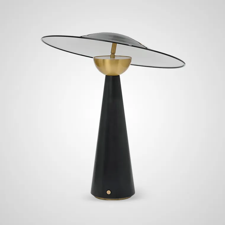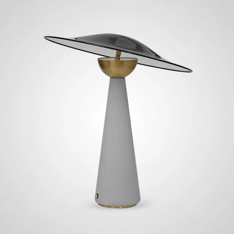 Серия настольных светодиодных ламп с поворотным абажуром в форме чаши на коническом основании из камня