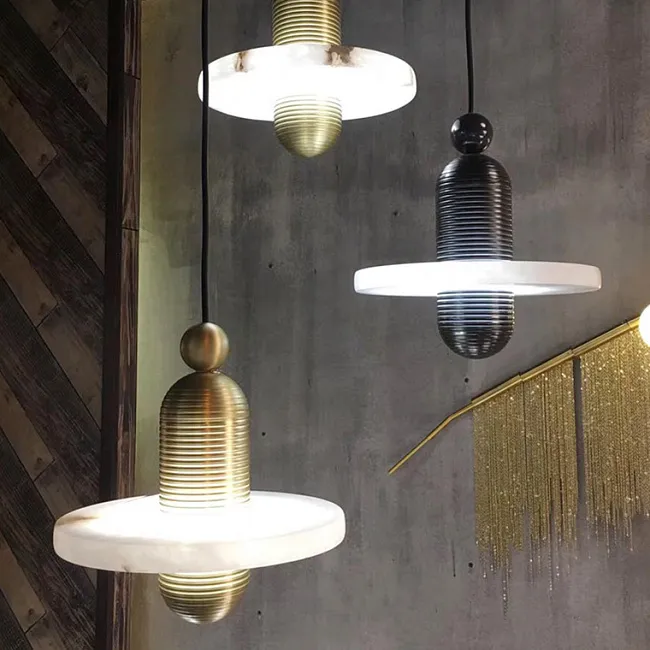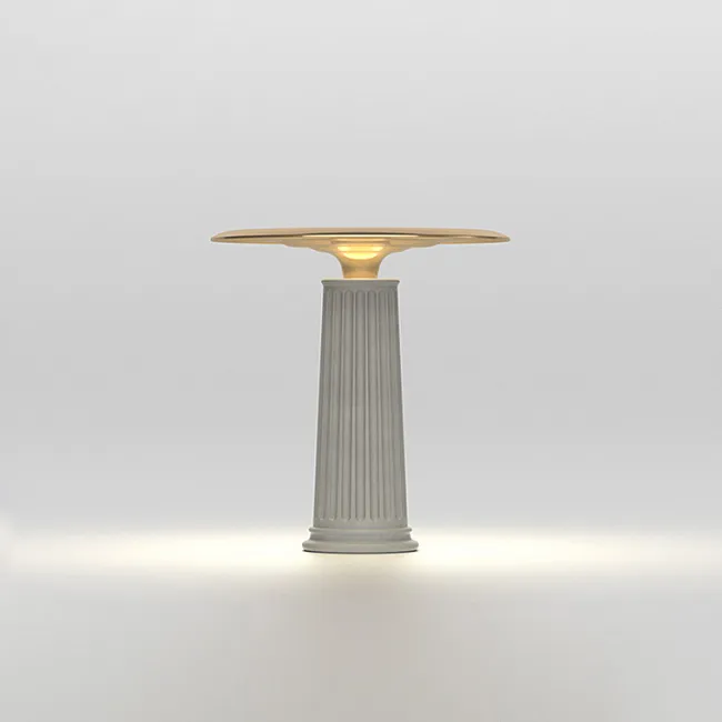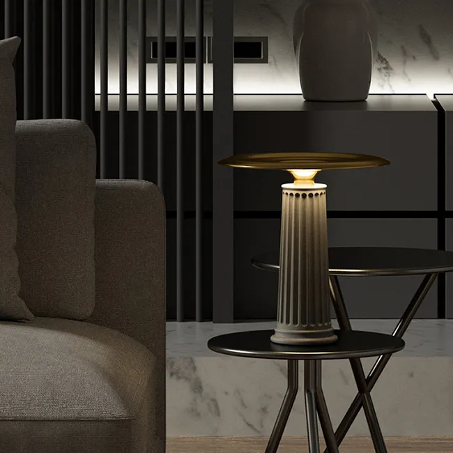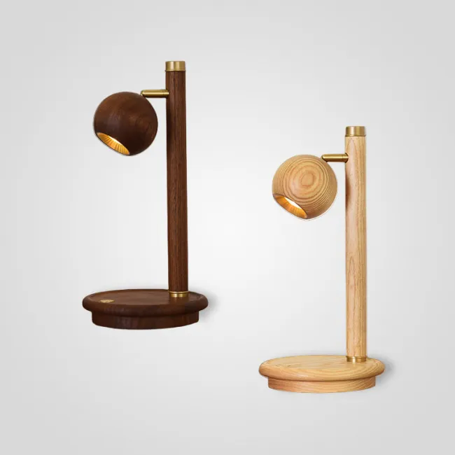 Серия настольных светодиодных ламп с поворотным абажуром в форме чаши на коническом основании из камня
