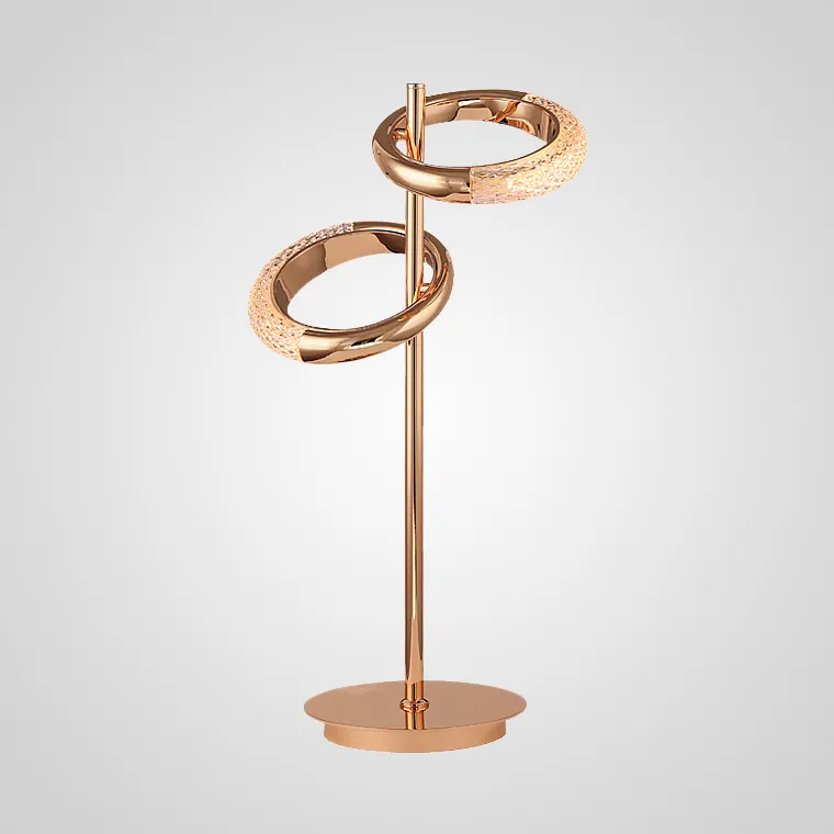 Премиальный настольный светильник с поворотными плафонами-кольцами из фигурного стекла. Настоящая инсталляция свадебных обручальных колец. Стеклянные плафоны, как драгоценные камни, будут создавать уютное теплое освещение в локальной зоне дивана, или кресла. Дизайнерское исполнение настольной лампы будет согревать вас приятными воспоминаниями о лучшем дне вашей жизни.