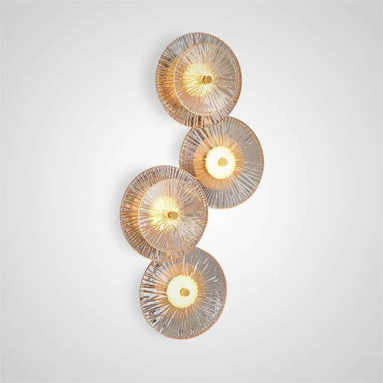 Светодиодный настенный светильник в стиле постмодерн. Плафон бра AGAPI WALL выполнен из текстурного стекла, в один или два слоя, что создает необычный эффект при прохождении света сквозь него. Каркас светильника металлического золотого оттенка, плафон комбинированный. Дизайнерская модель бра будет смотреться стильно, свежо и независимо в любом помещении.