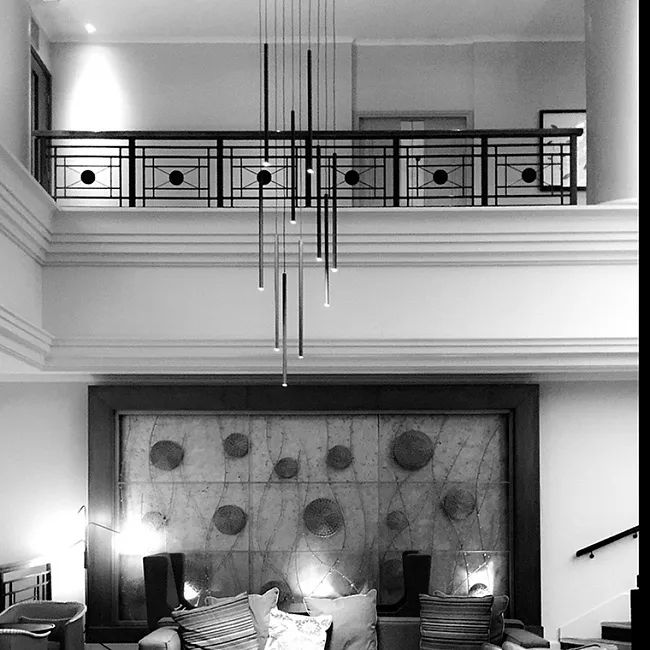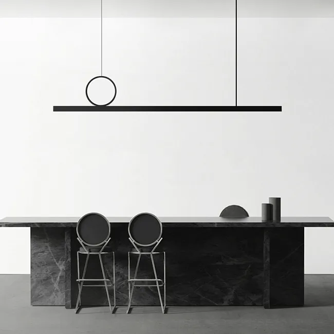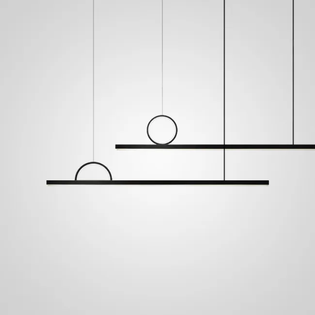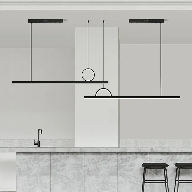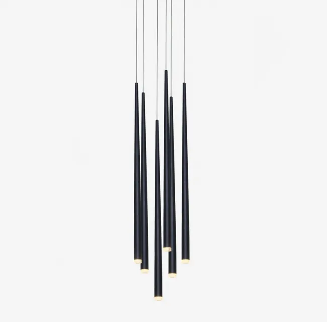 Размер плафона составляет Ø 1,7 × 180 см, что позволяет оптимально расположить светильник в вашем помещении. Форма плафона имеет стержень и черный цвет, что создает модный и элегантный вид. Черный матовый каркас гармонично сочетается с черными стойками, что делает данный светильник очень стильным и современным.