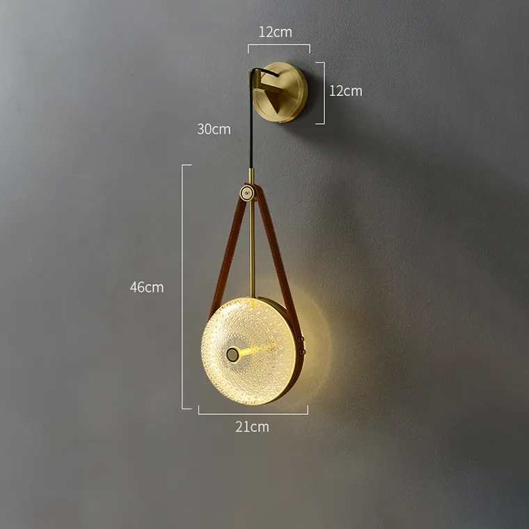 Дизайнерский настенный светильник с рельефным стеклянным плафоном дисковидной формы на кожаном ремешке