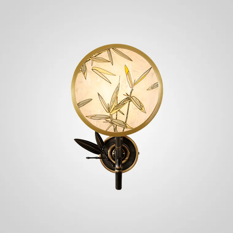 Светодиодный настенный светильник в виде стебля бамбука со стеклянным панно с росписью в японском стиле
