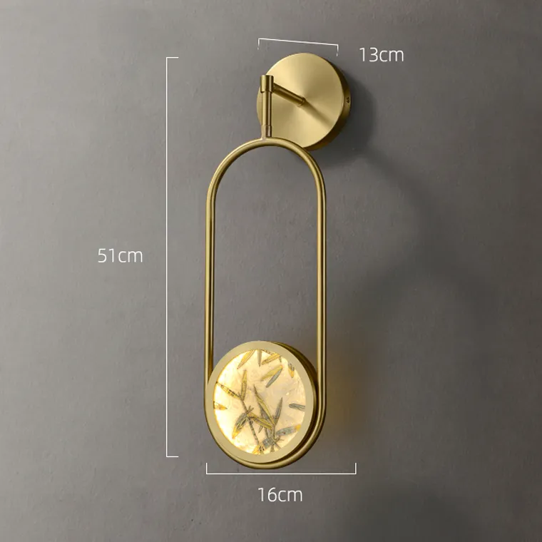 Светодиодный настенный светильник с круглым стеклянным панно с росписью в японском стиле в металлической рамке со скругленным краями