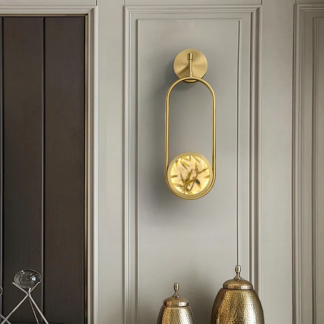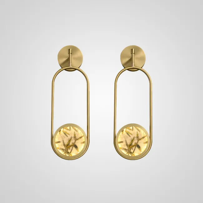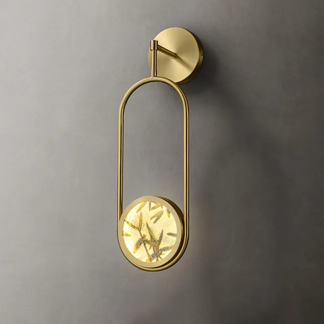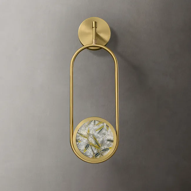 Светодиодный настенный светильник в виде стебля бамбука со стеклянным панно с росписью в японском стиле