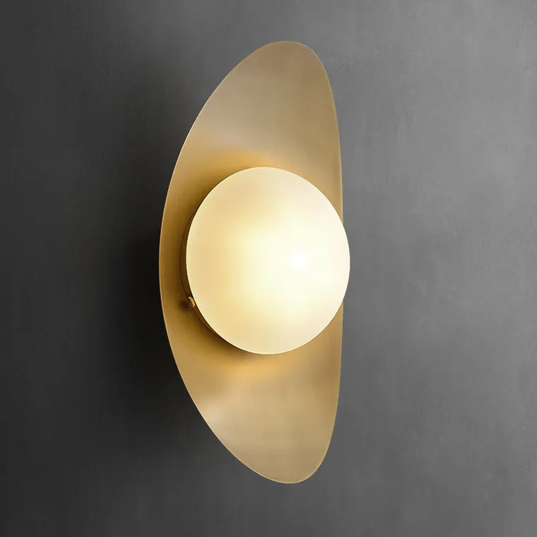 Настенный светильник с шарообразным стеклянным плафоном на металлической основе в форме листа