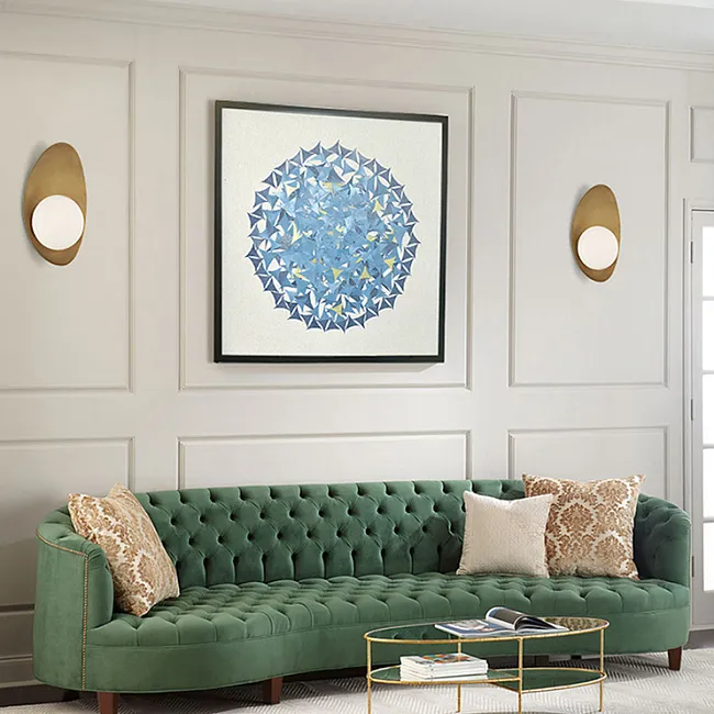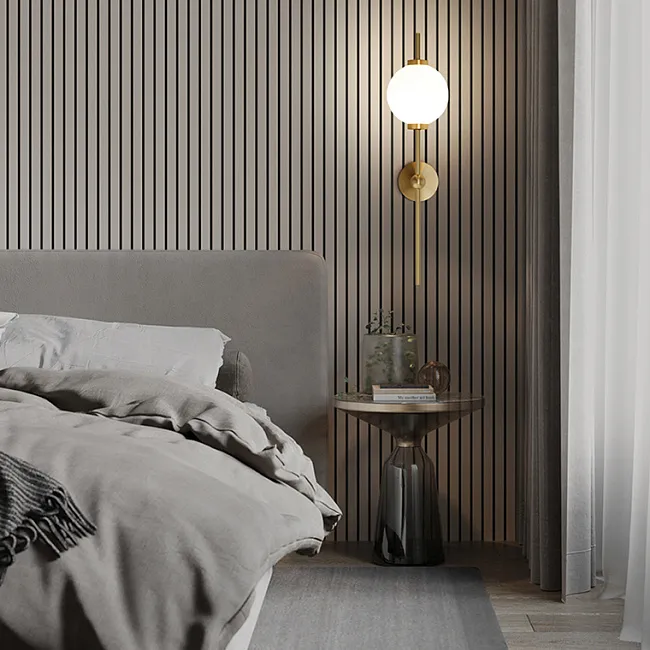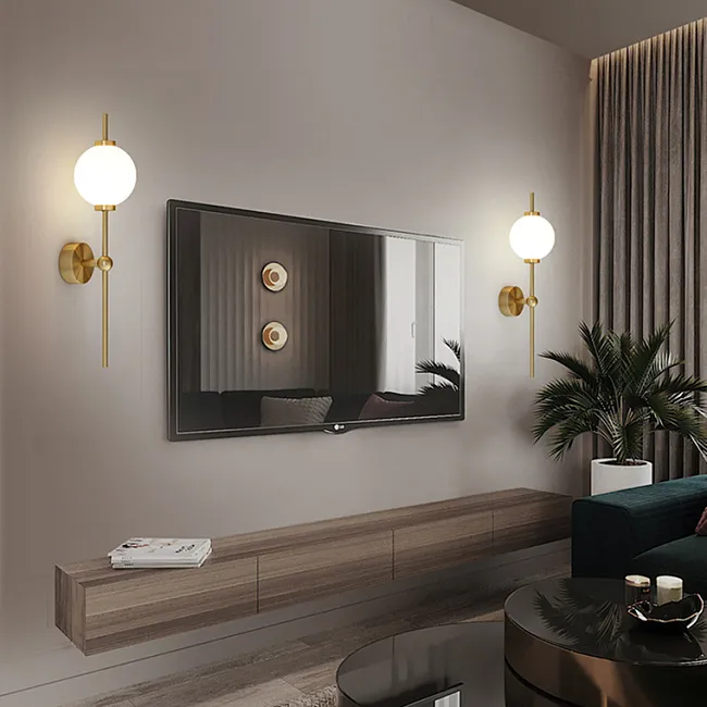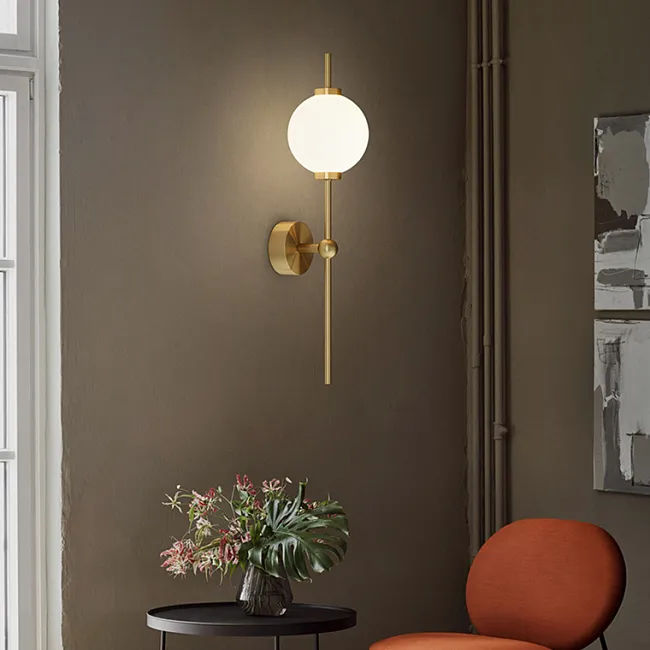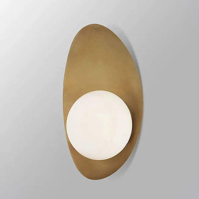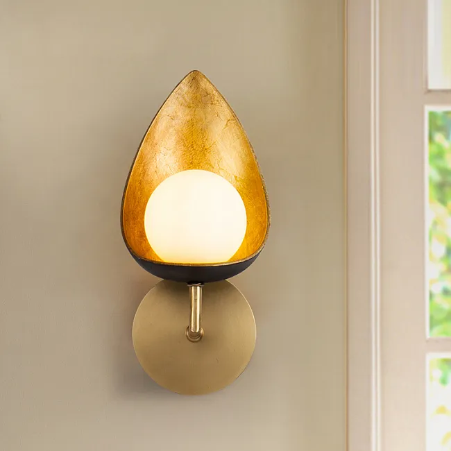 Настенный светильник с шарообразным стеклянным плафоном на металлической основе в форме листа