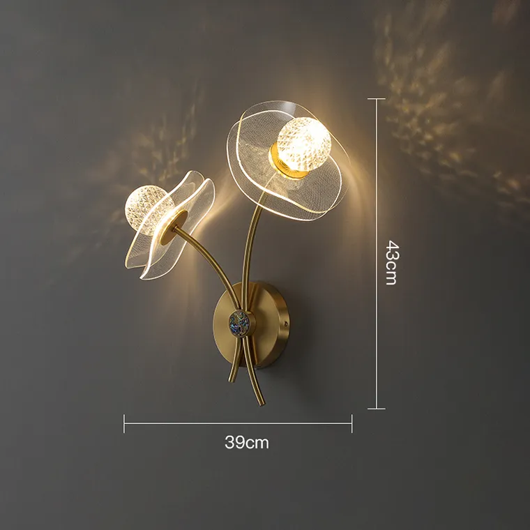 Настенный светильник в виде цветка с акриловыми изогнутыми пластинами с точечным паттерном и шарообразными резными плафонами