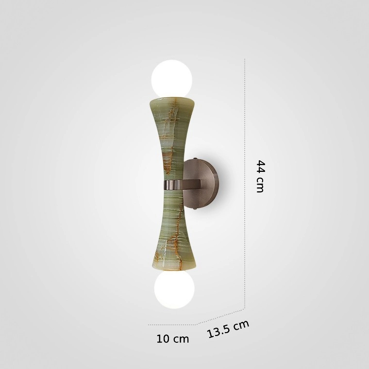 Серия настенных светильников из натурального камня с двумя плафонами в форме шара на фигурном корпусе