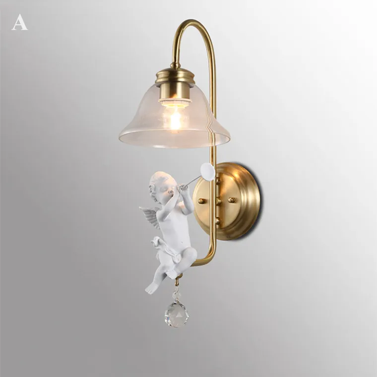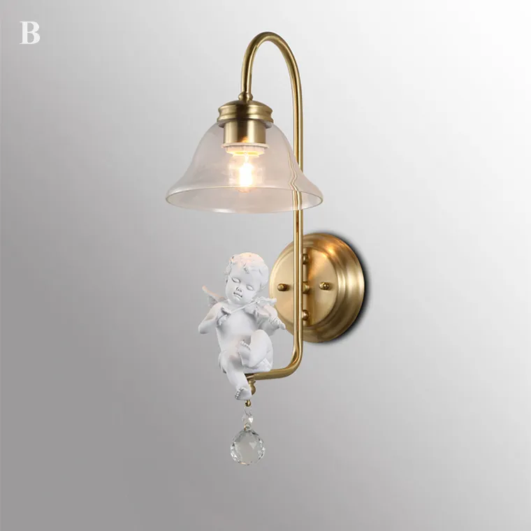 Настенный светильник бра с фигуркой ангела и стеклянной подвеской
