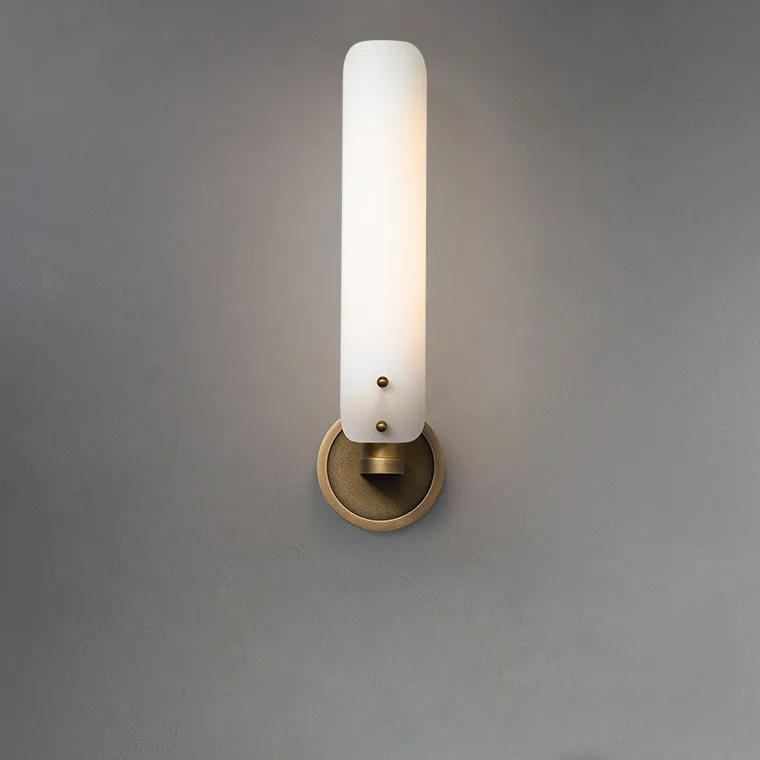 Дизайнерский настенный светильник с оригинальным плафоном в стиле постмодерн Ante ещё долго не выйдет из моды, ведь такие вещи вне времени и вне моды. Нежный, изящный, продуманный вплоть до мелочей – он станет предметом восхищения, внимания и обсуждения для тех, кто его увидит. Выигрышное сочетание благородной меди с белым матовым стеклом ещё никого не оставило равнодушным.