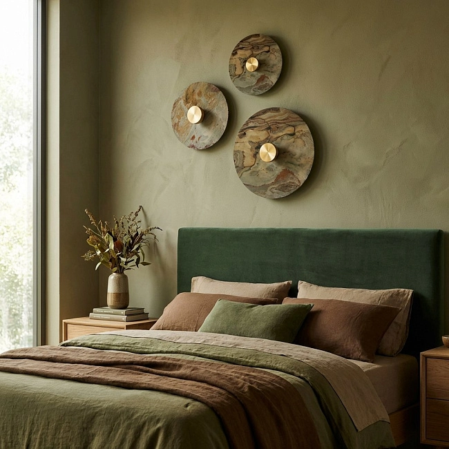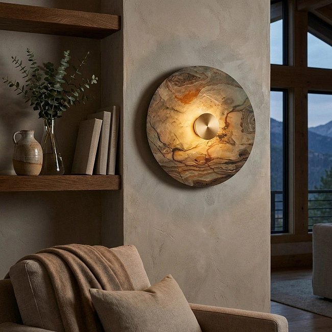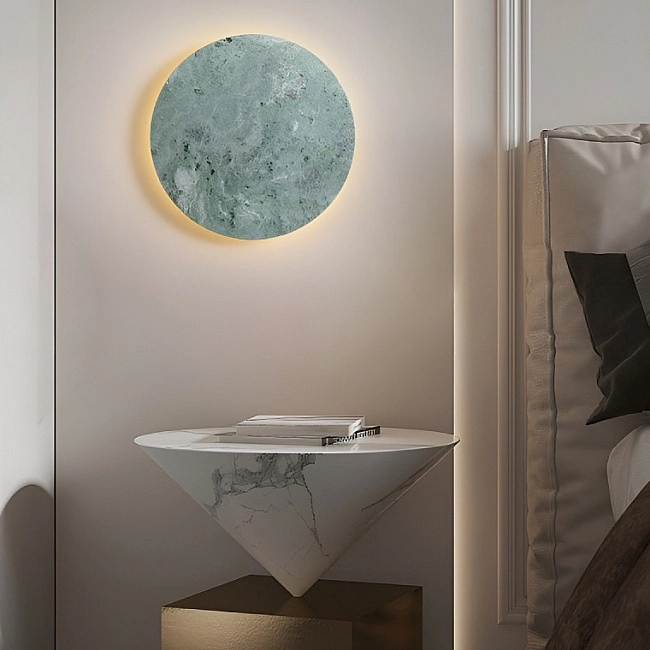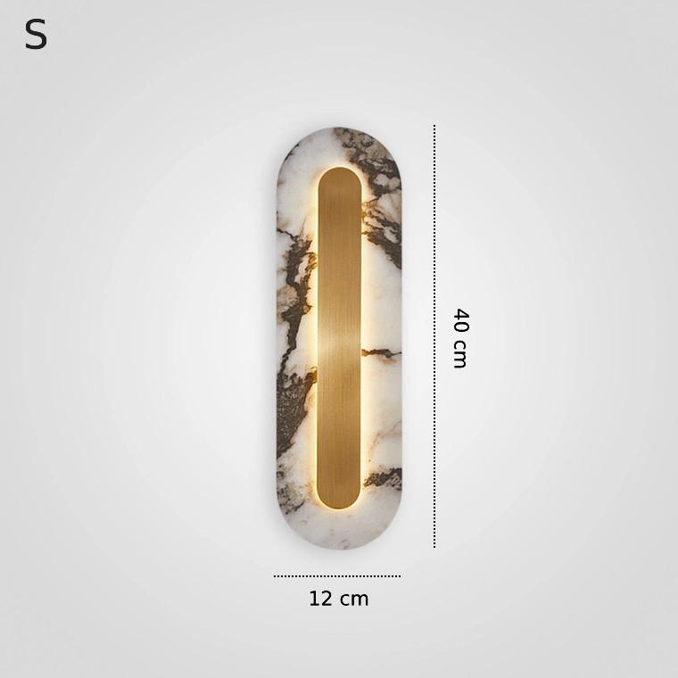 Настенные светильники с корпусом овальной формы из натурального мрамора в стиле Bulgari и латунной пластиной в центре