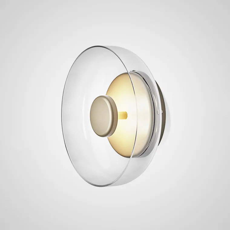 Размеры бра составляют Ø 23 см, вылет от стены - 9.5 см, что позволяет эффективно осветить нужную зону без лишнего загромождения пространства. Металлический каркас золотого цвета и прозрачный плафон из стекла придают бра ARCTIC WALL изысканный и современный вид.