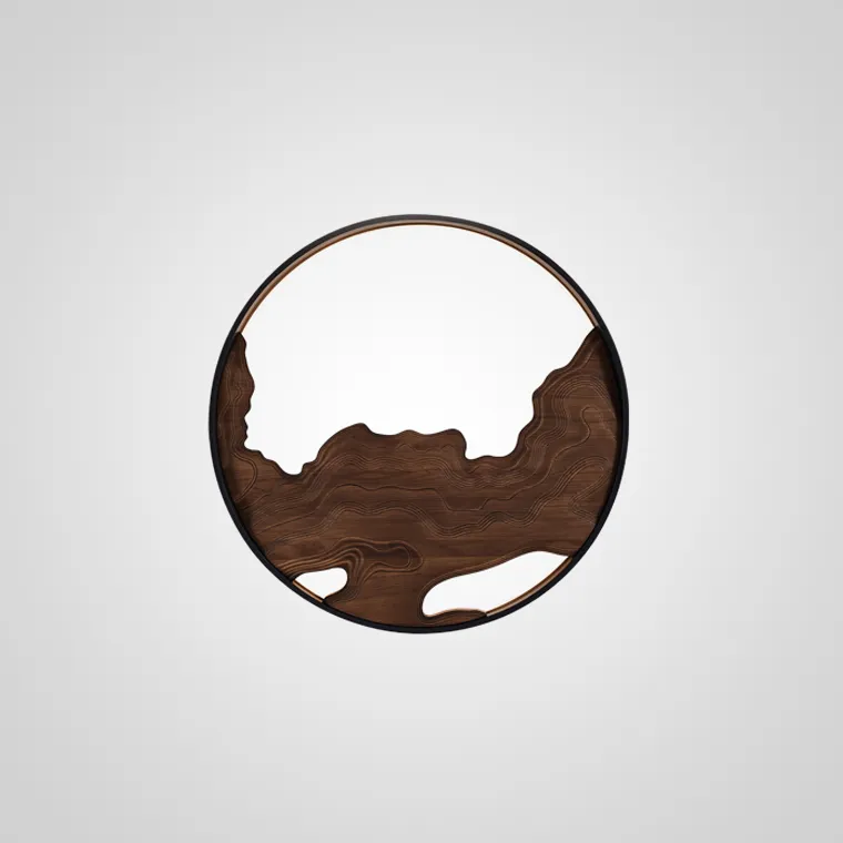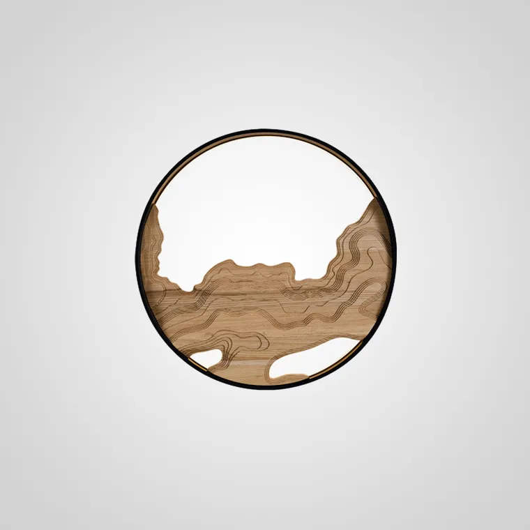 Серия настенных светодиодных светильников с деревянным декором на кольцевом корпусе