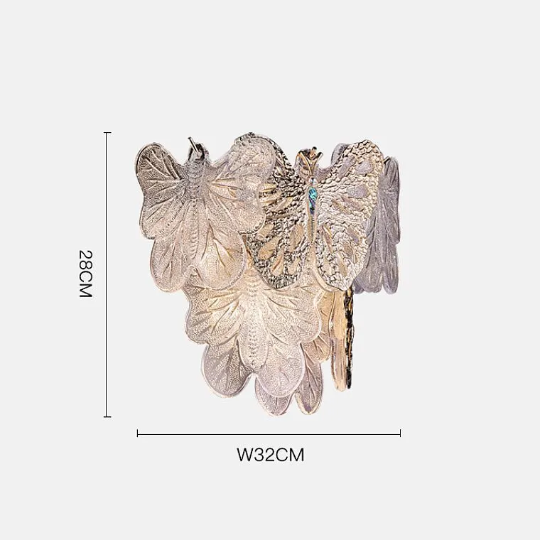 Настенный светильник с ажурным абажуром в форме бабочек из художественного стекла и металла