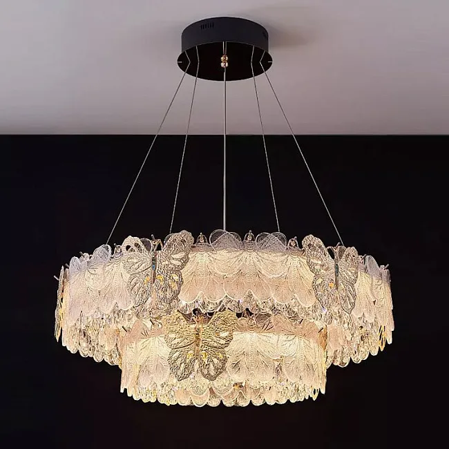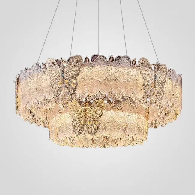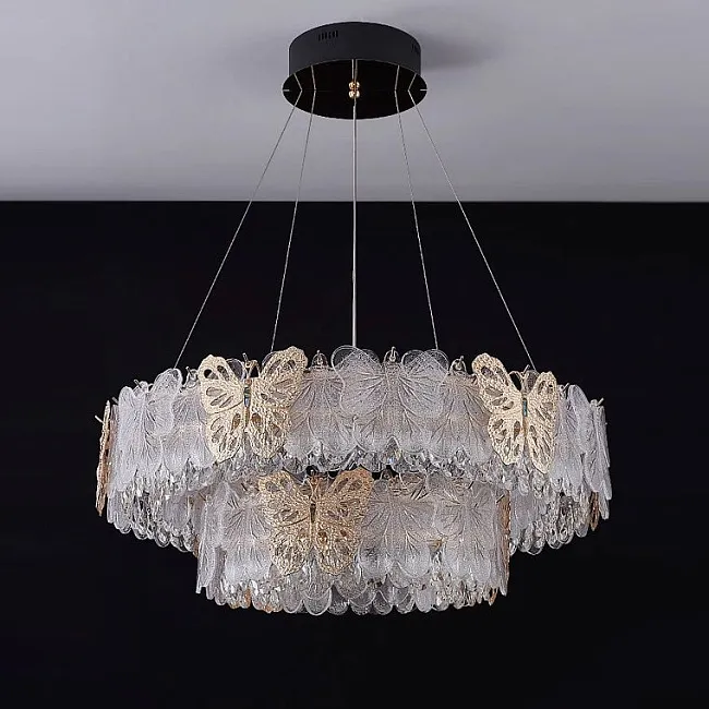Настенный светильник с ажурным абажуром в форме бабочек из художественного стекла и металла