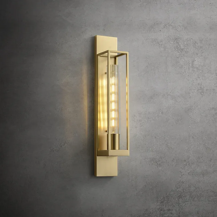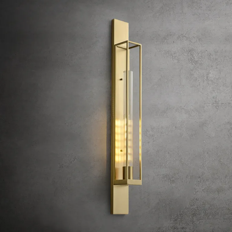 Настенный светильник с цилиндрическим плафоном из рифленого стекла в прямоугольном каркасе