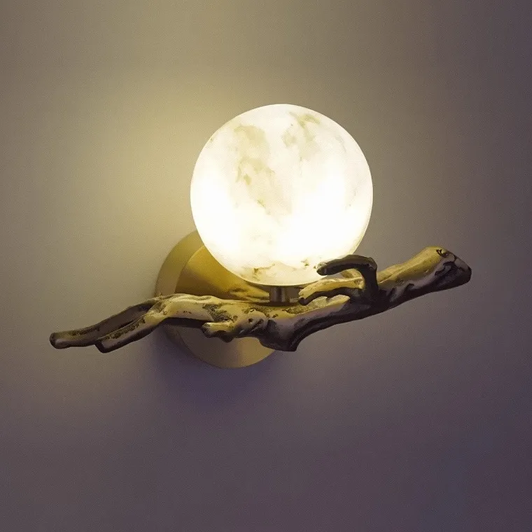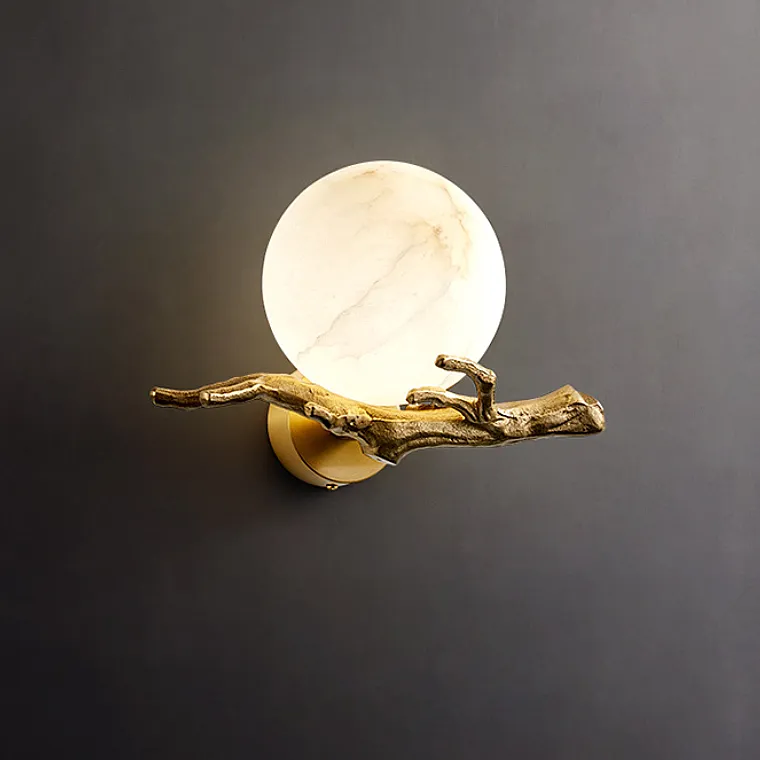 Настенный светильник в виде ветки с шарообразным плафоном из мрамора
