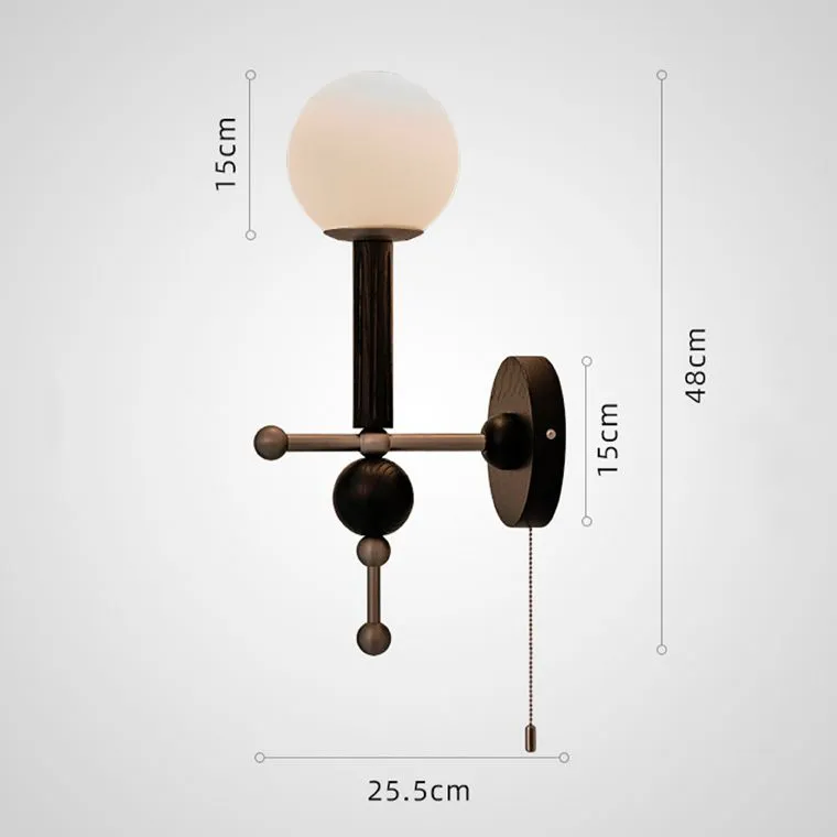 Представляем вам настенный светильник BERTON WALL – идеальное решение для создания уютной и стильной атмосферы в вашем интерьере. Этот завораживающий светильник с шарообразным стеклянным плафоном, декором из металла и темного дерева станет настоящим украшением любой стены. Размер бра - 15 × 48 см, вылет от стены - 25,5 см.