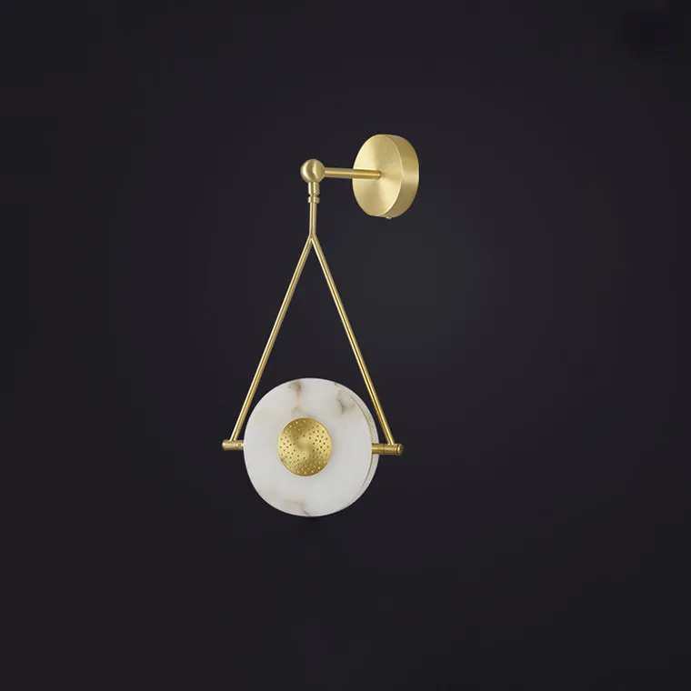 Настенный светильник с дискообразным мраморным плафоном в треугольной рамке из металла