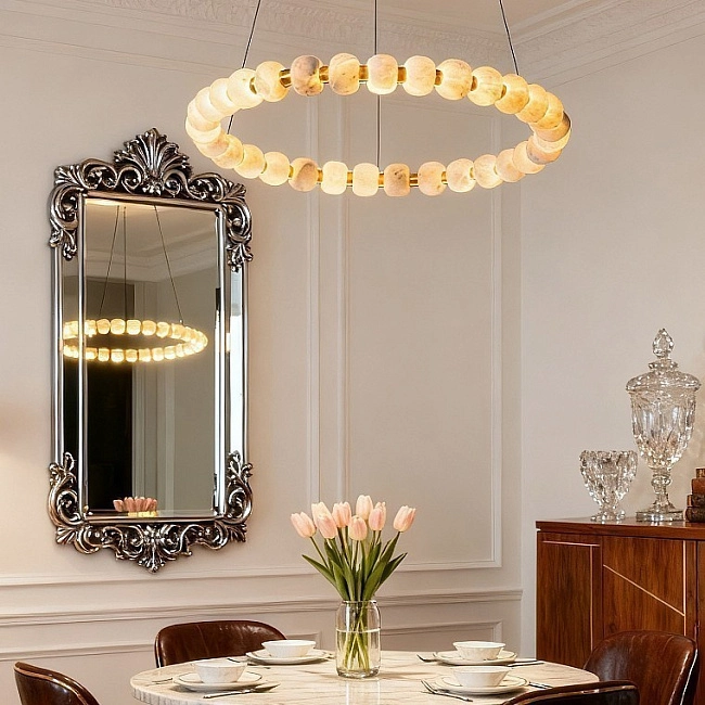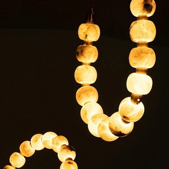 Настенный светильник бусы с овальными плафонами из мрамора на дугообразной стойке