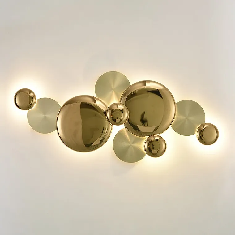 Настенный светильник в виде композиции из металлических дисков с глянцевой и матовой поверхностью