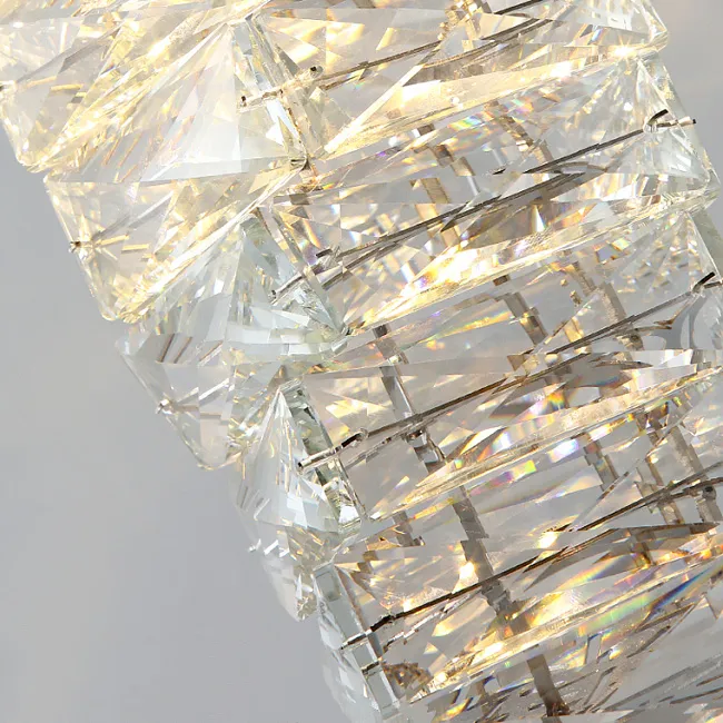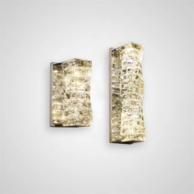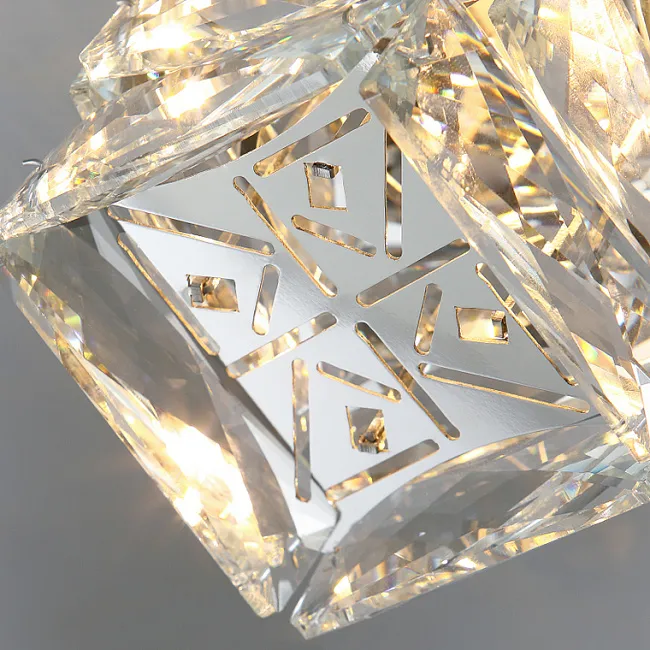 Сложная игра света и тени, создаваемая составным плафоном из хрустальных ограненных пластин, завораживает с первого взгляда. Свет, проходя через каждую грань, мягко рассыпается на тысячи блестящих искр, которые словно оживают, придавая помещению атмосферу волшебства и уюта. Необычное сочетание прозрачности хрусталя и матовой латуни добавляет светильникам особого шарма и делает их центром притяжения в вашем интерьере.