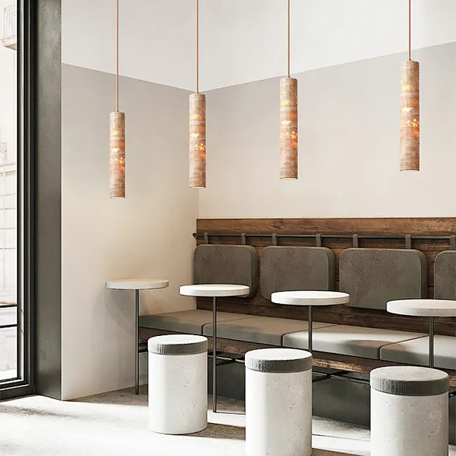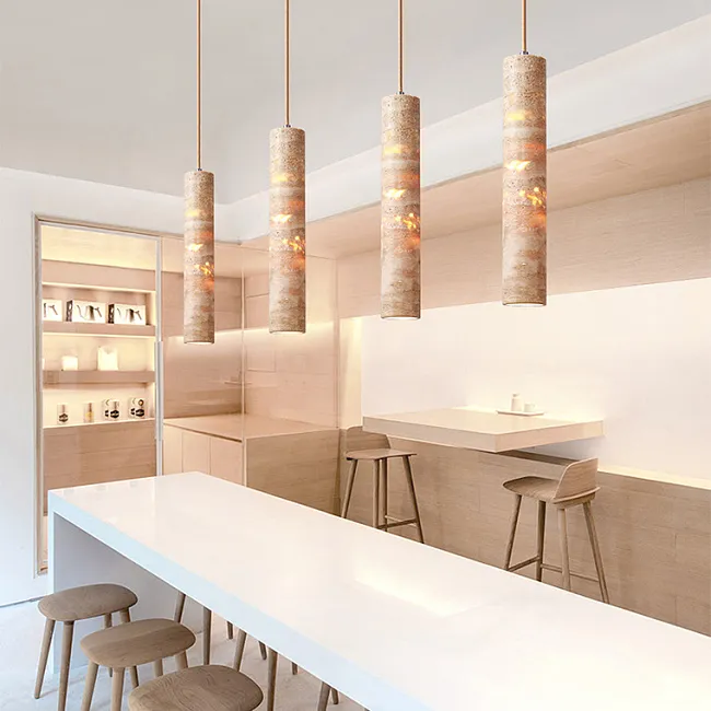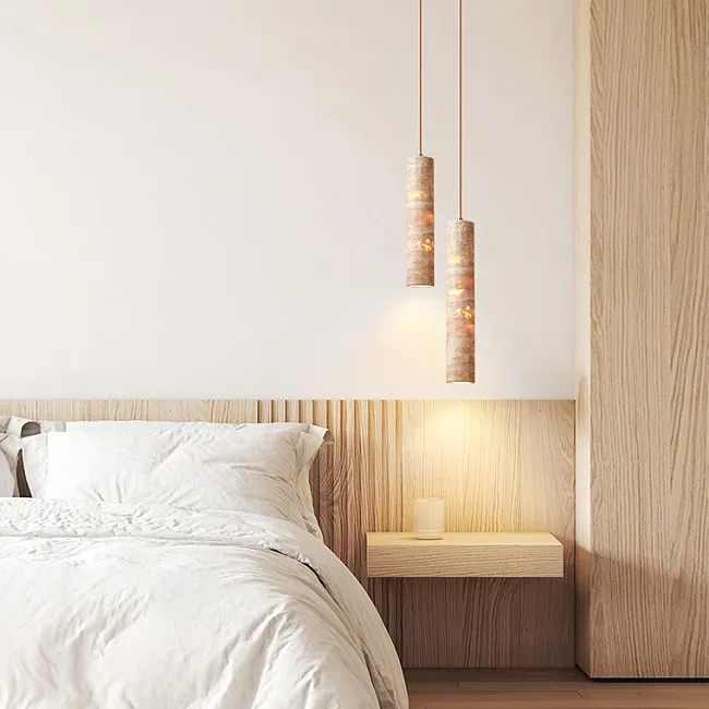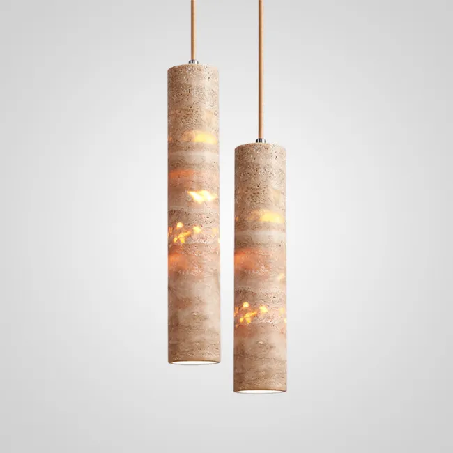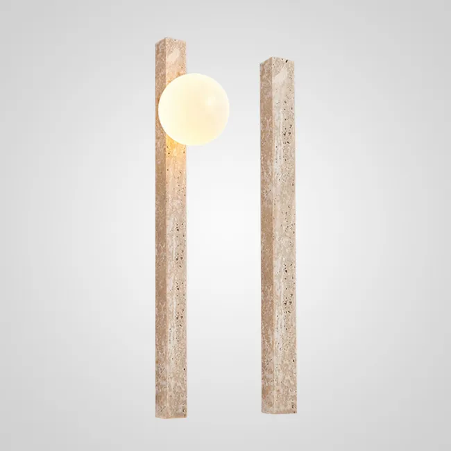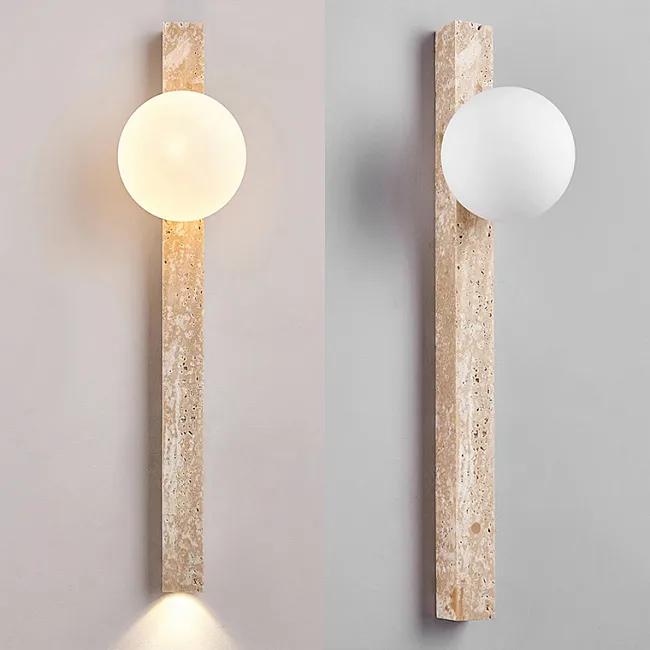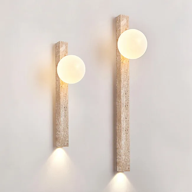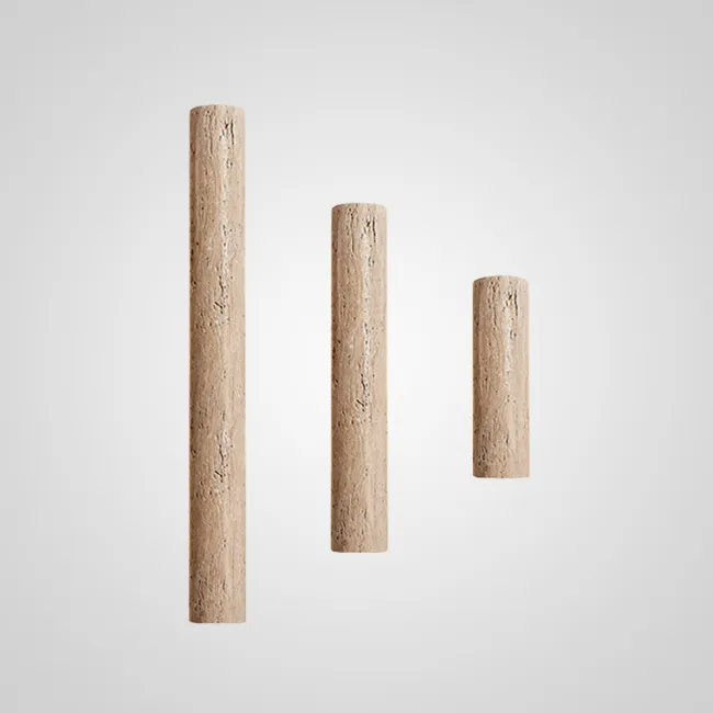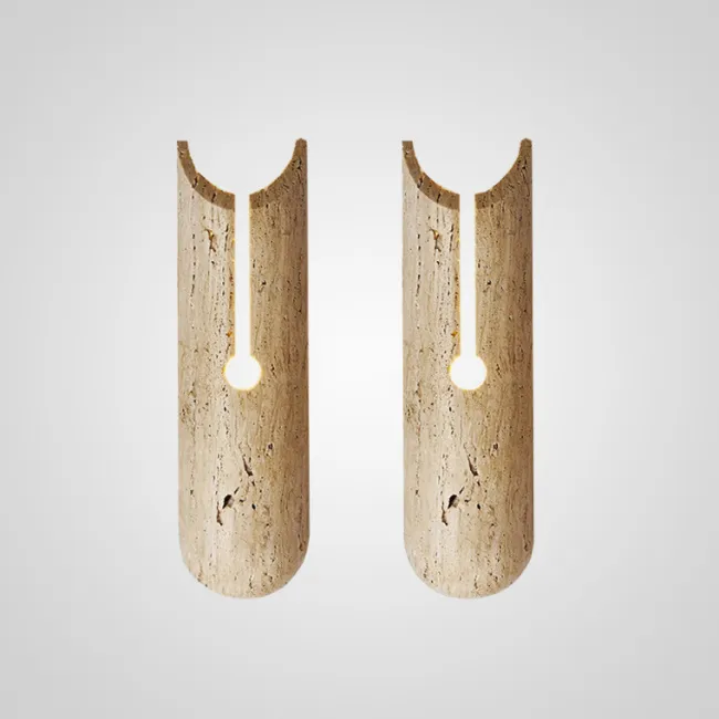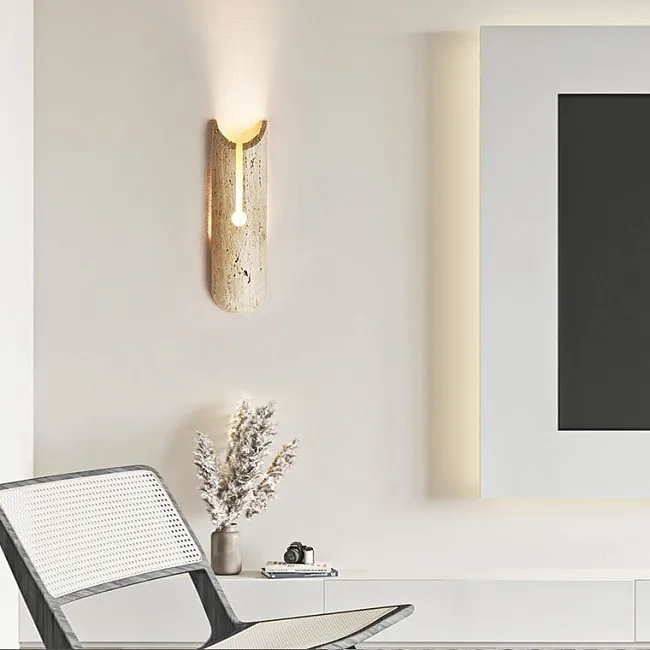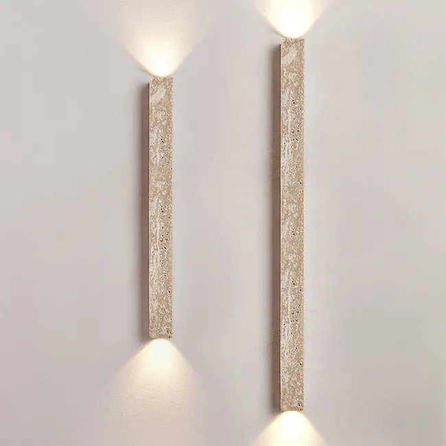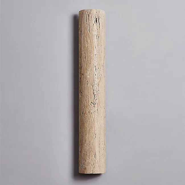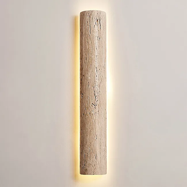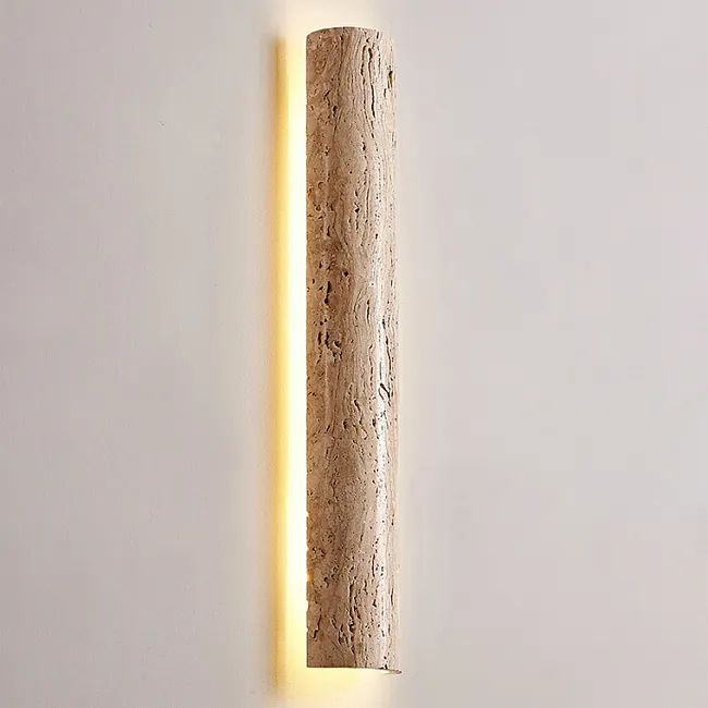 Серия настенных светодиодных светильников с вытянутым цилиндрическим корпусом из желтого камня травертина
