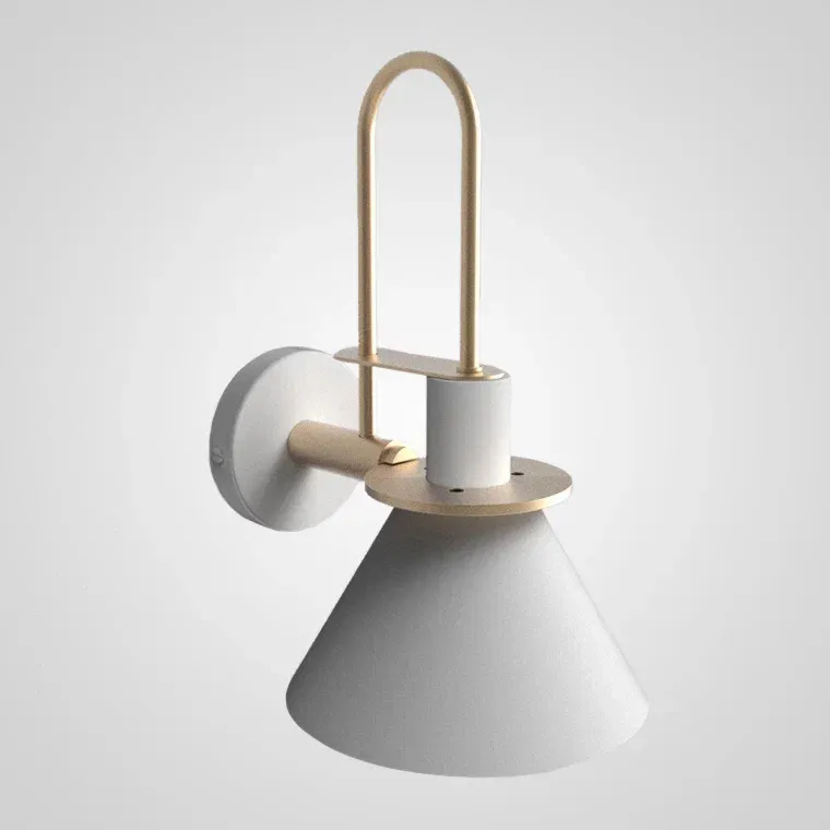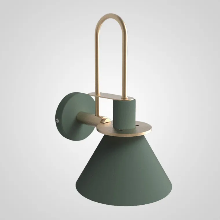 Дизайнерское бра в стиле индустриального минимализма с коническим плафоном на металлическом основании идеально впишется в интерьеры в стиле лофт или хай-тек. Осветительный прибор может выступить в качестве дополнительной подсветки, к примеру, столиков в кафе, туалетных комнат, а также рабочих мест и зон отдыха. Модель представлена в трёх цветовых вариациях: черном, белом и – тёмно-зелёном.