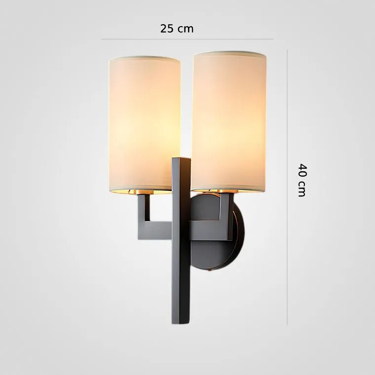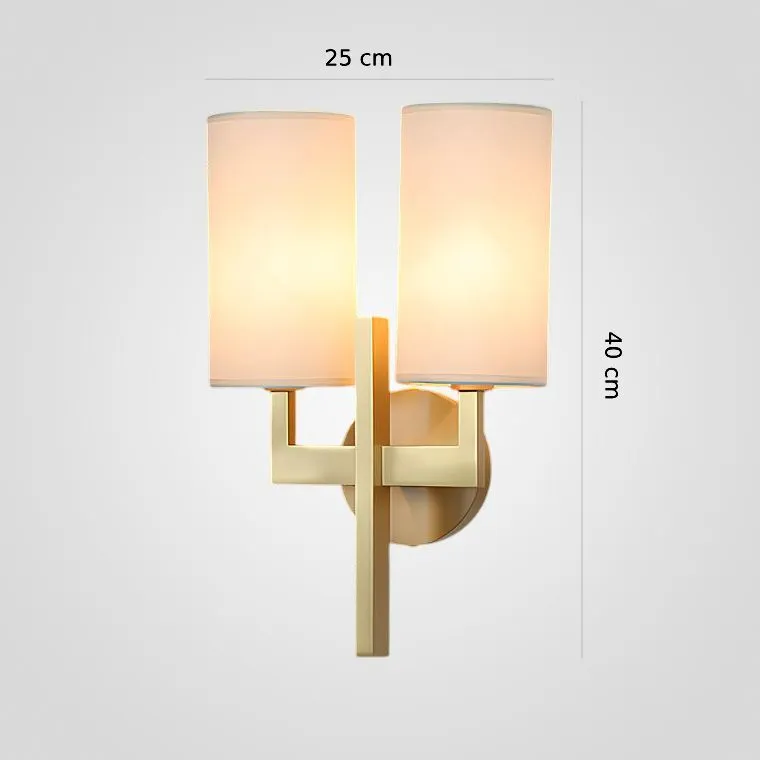 Настенный светильник с двумя цилиндрическими текстильными абажурами на латунной стойке