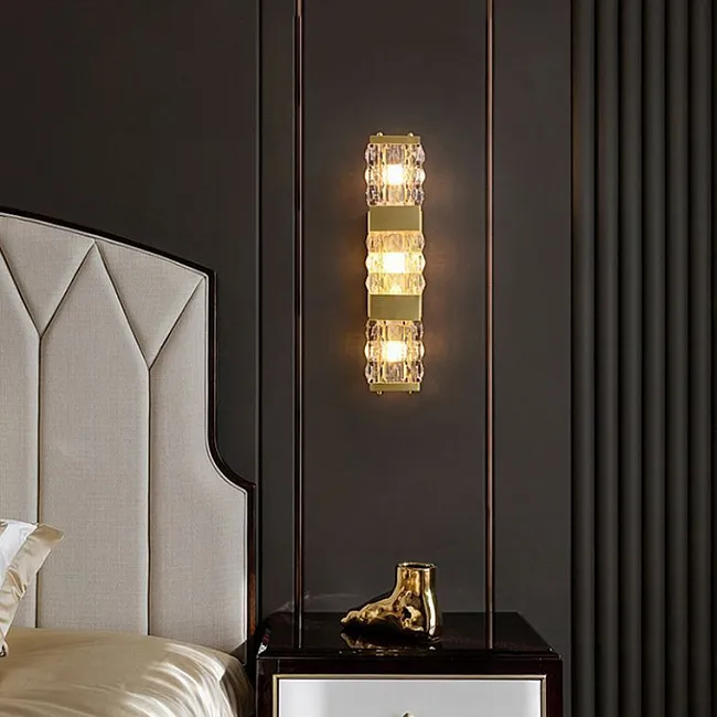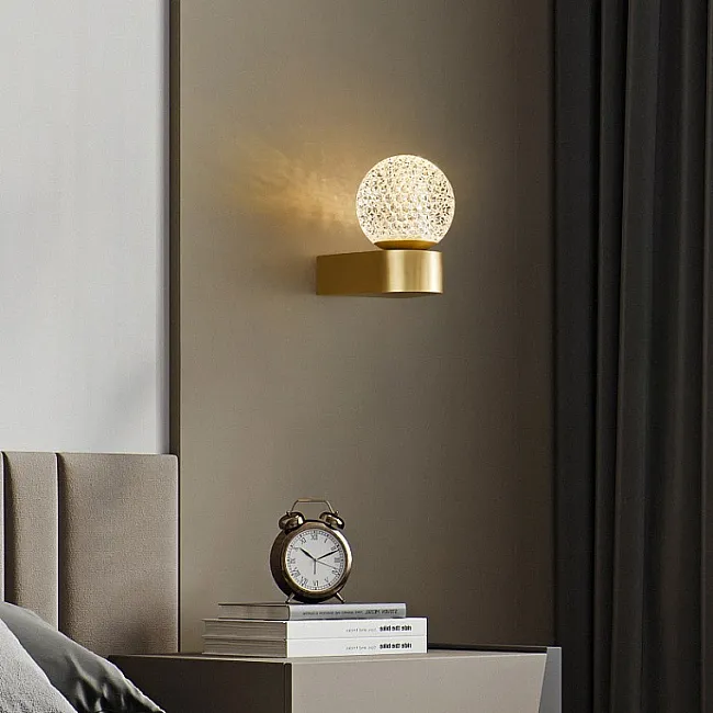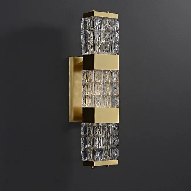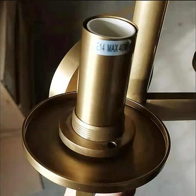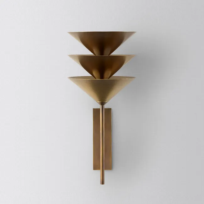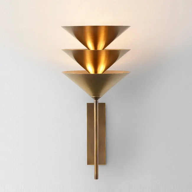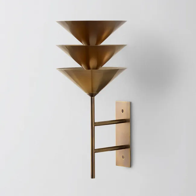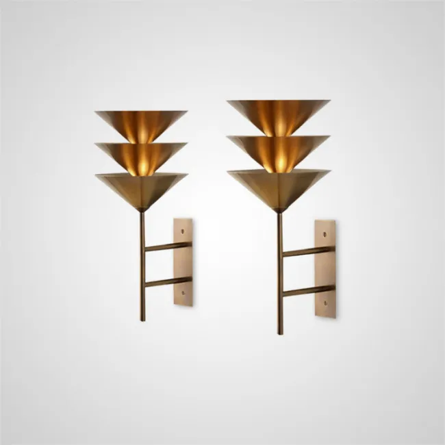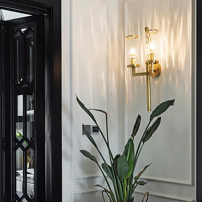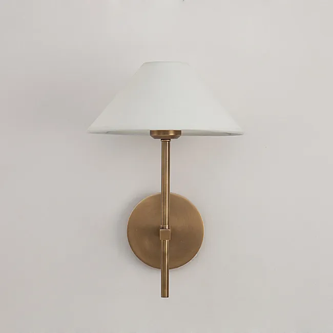 Настенный светильник с двумя цилиндрическими текстильными абажурами на латунной стойке