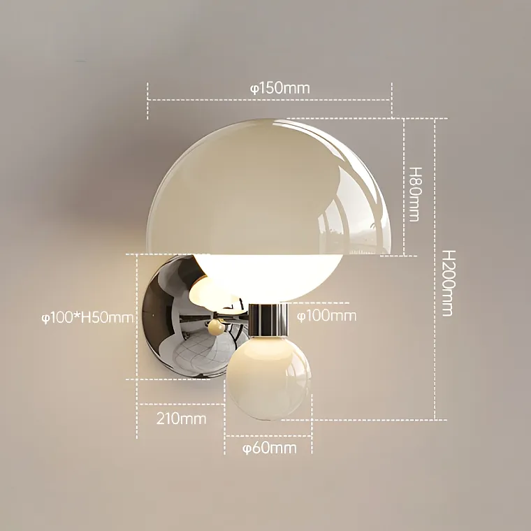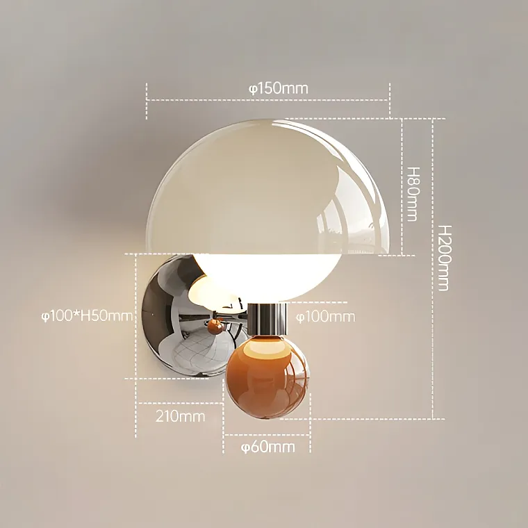 Настенный светильник с полусферическим плафоном и декоративным шарообразным элементом на металлическом основании