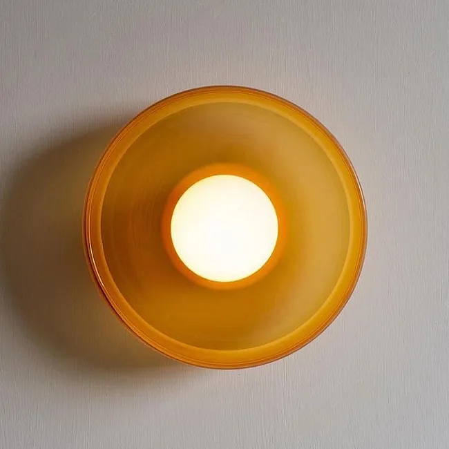 Настенный светильник с полусферическим плафоном и декоративным шарообразным элементом на металлическом основании