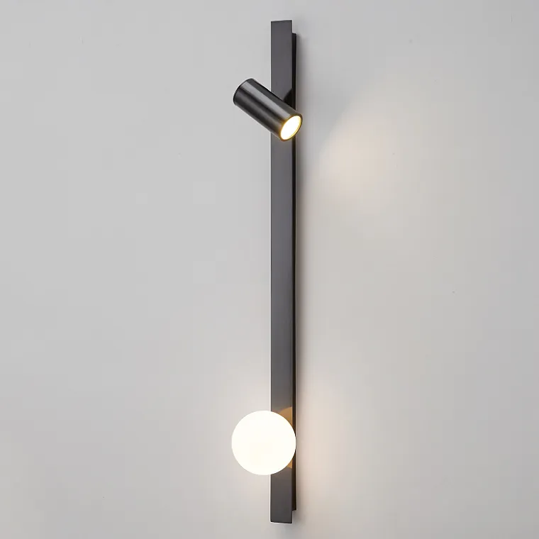 Главной особенностью бра является его оригинальный дизайн. Шарообразный плафон изготовлен из стекла, что обеспечивает его прочность и долговечность. Поворотный спот на вытянутом прямоугольном корпусе позволяет регулировать направление света и создавать различные световые сценарии.