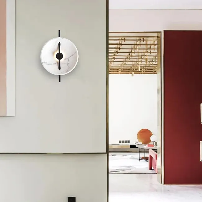 Настенный светильник в виде вогнутого диска из мрамора с LED подсветкой