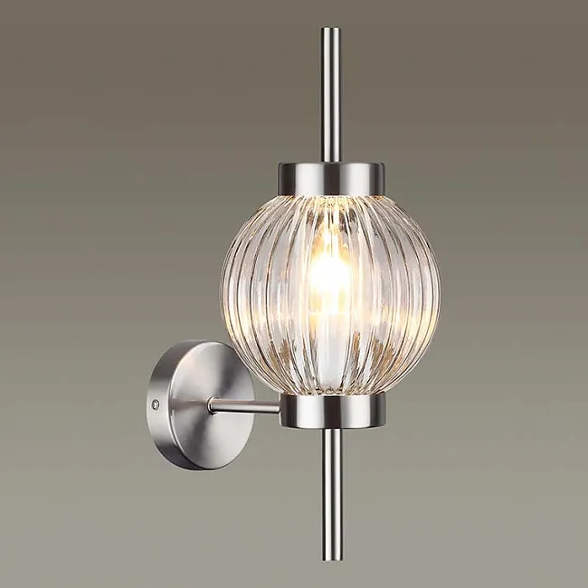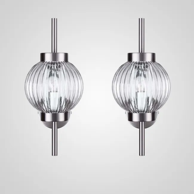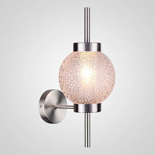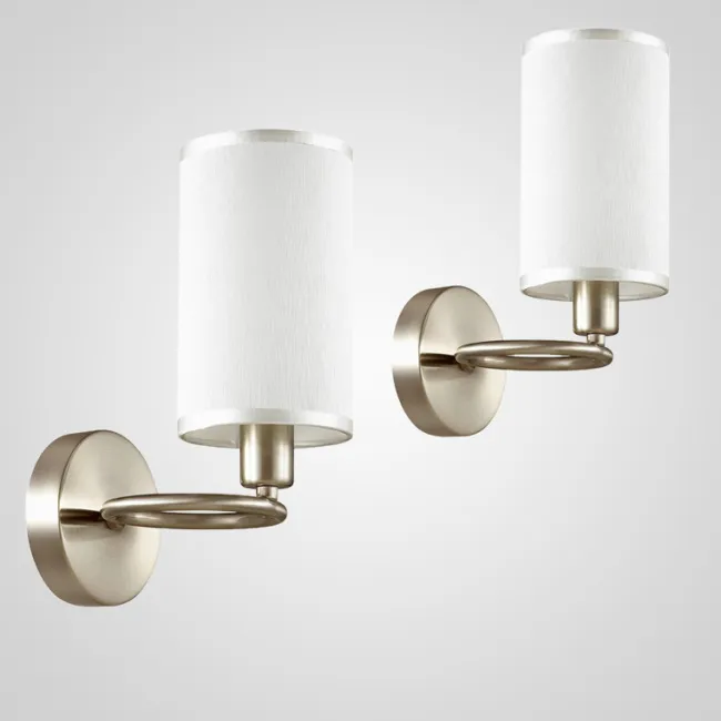 Настенный светильник с коническим текстильным абажуром на сборной стойке из латуни и хрусталя