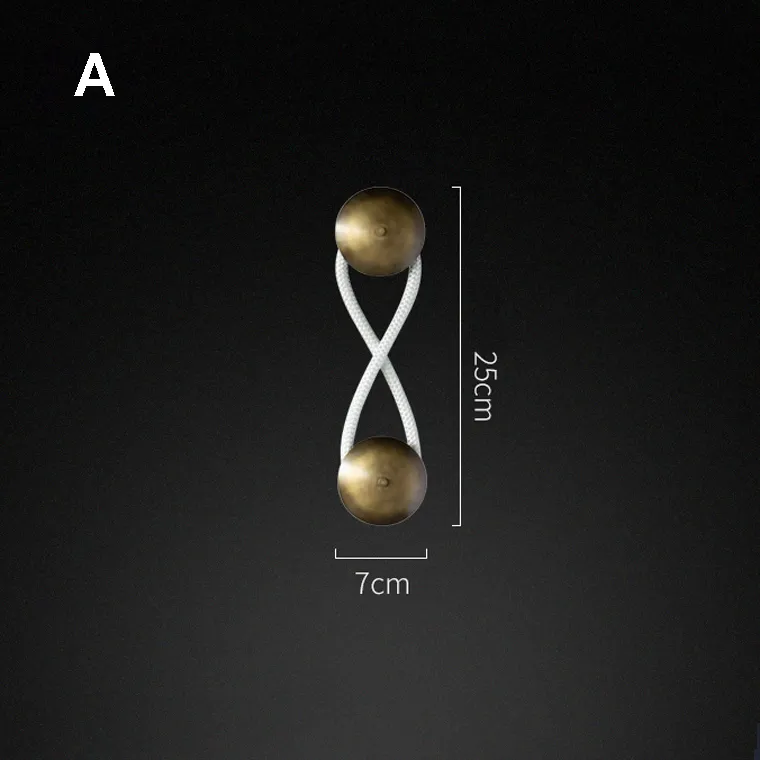 Серия настенных светильников с круглыми латунными крепежами обвитыми гибким светодиодным шнуром