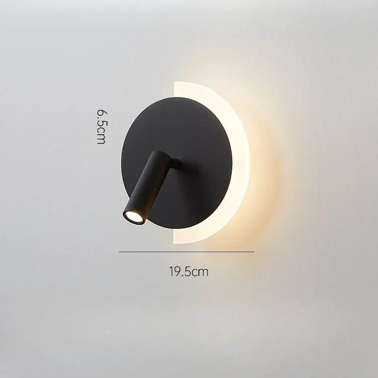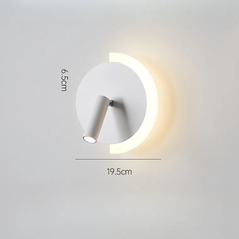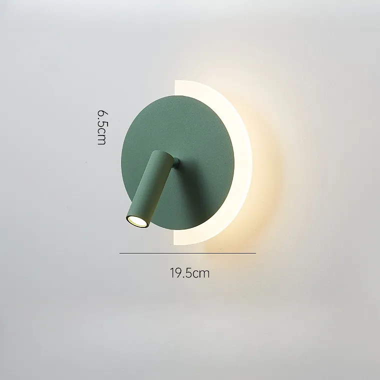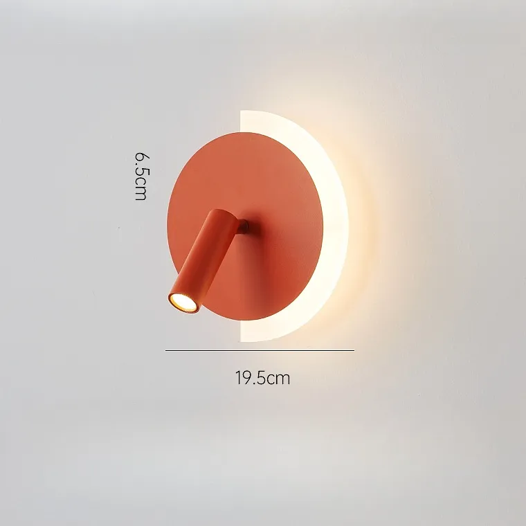 Серия разноцветных настенных светильников в виде диска с LED подсветкой по дуге и поворотным спотом